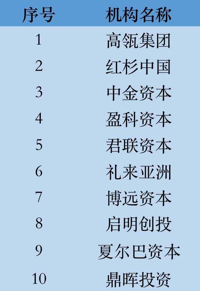 • 最佳募资创业投资机构 TOP10融资中国