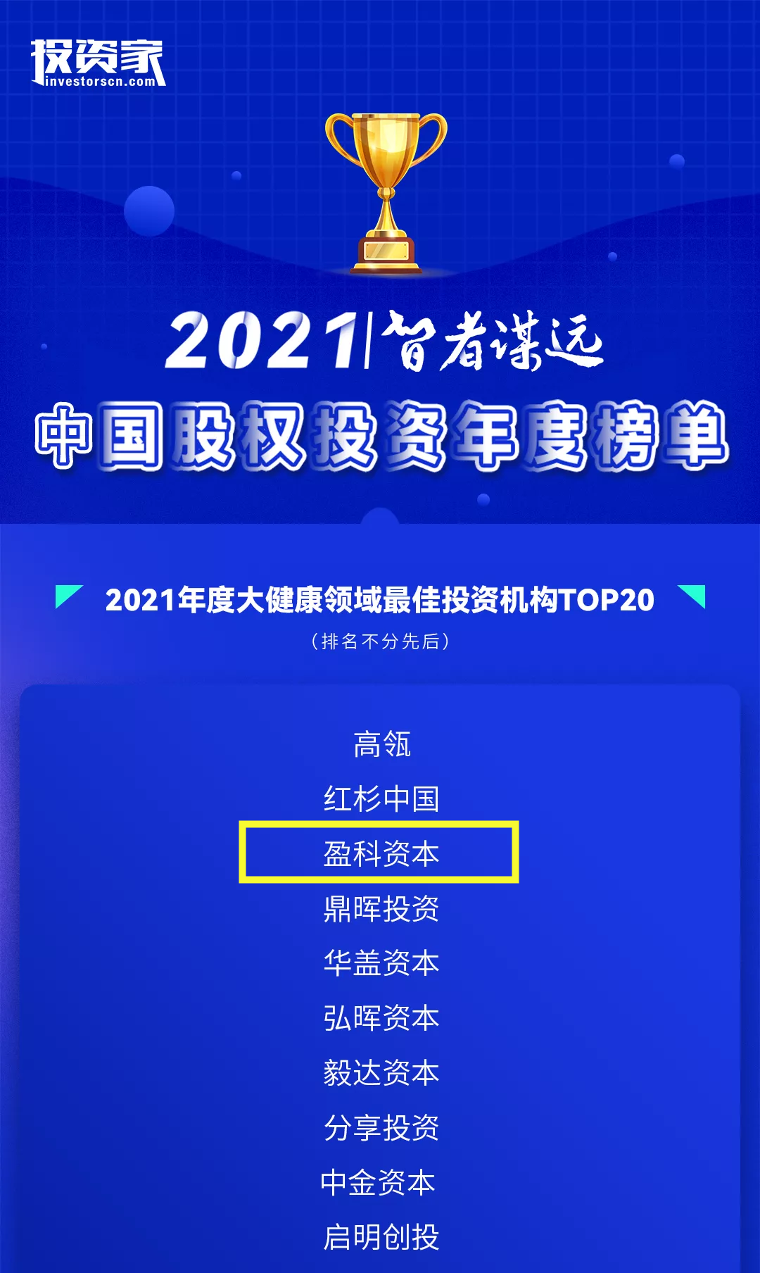 • 年度大健康领域最佳投资机构TOP3投资家网